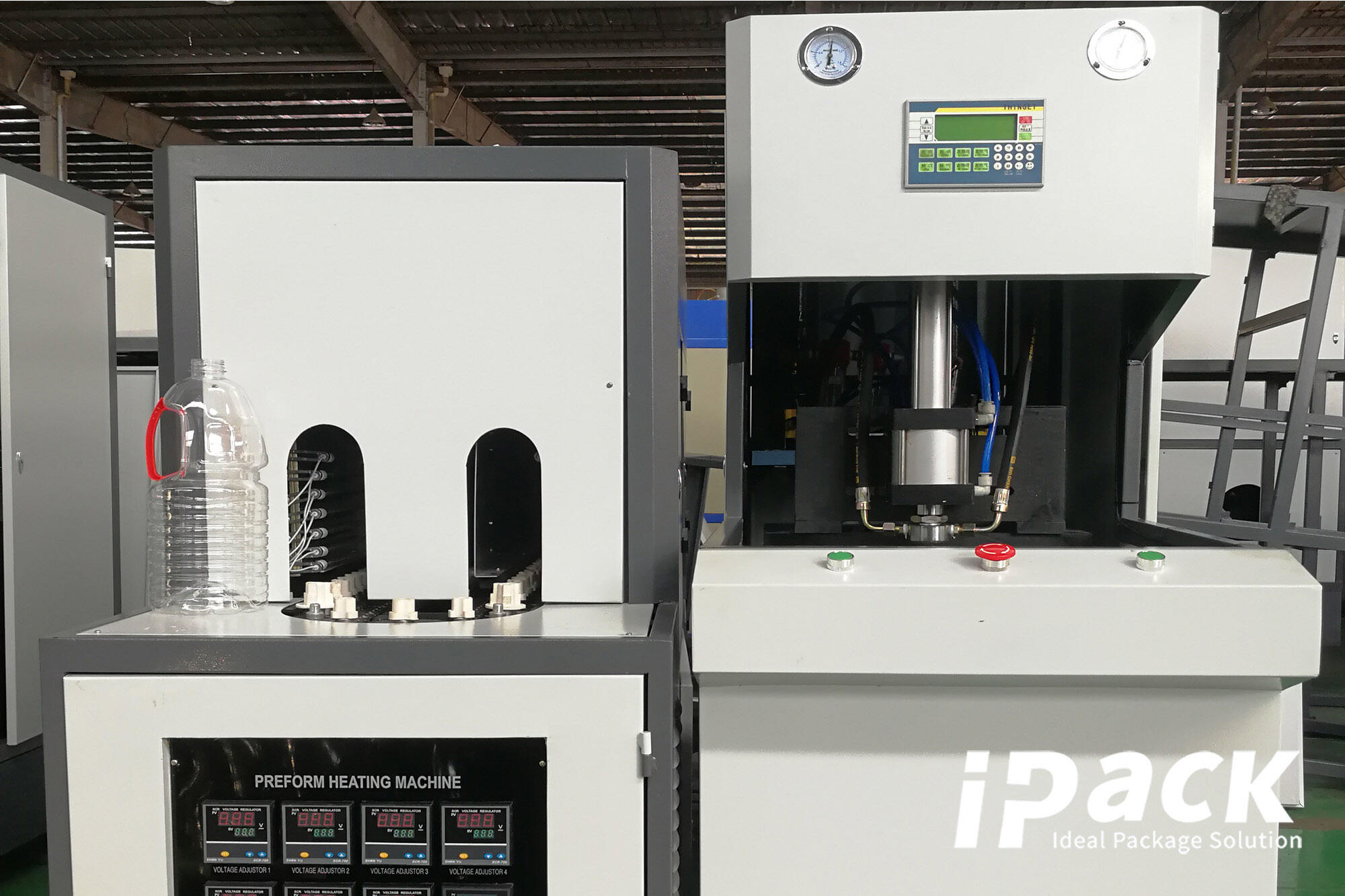 Poluautomatski stroj za puhanje boca pogodan je za proizvodnju PET plastičnih posuda i boca od 0,1L do 20L. Naširoko se koristi za proizvodnju boce mineralne vode, boce gaziranog pića, boce soka, boce pesticida, boce ulja, dnevne boce kemikalija, boce kozmetike, staklenke širokog grla, PET limenke itd.