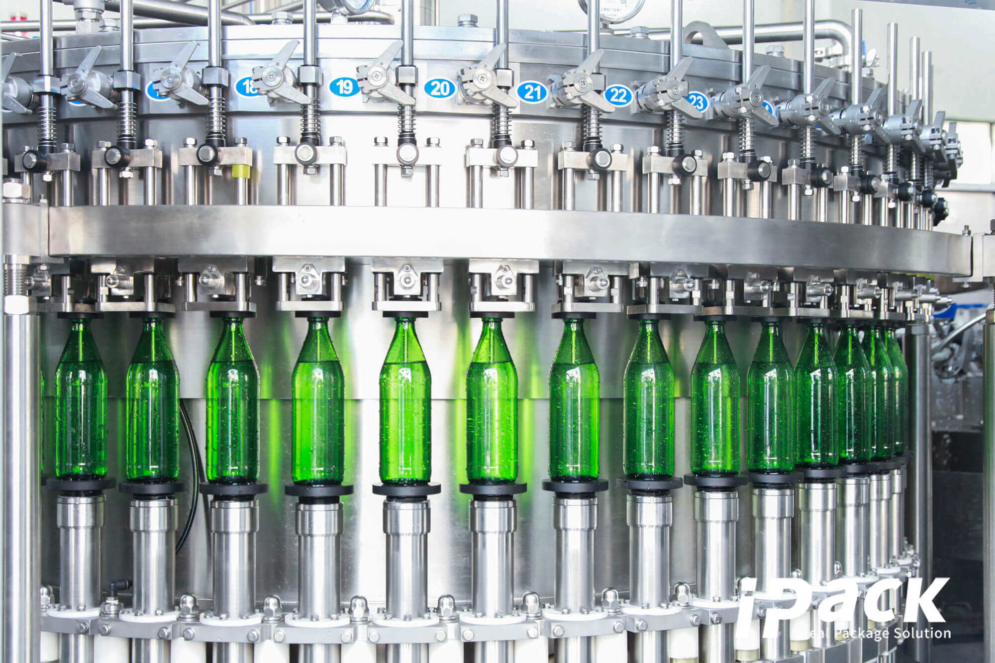 Ova mašina se uglavnom koristi za operacije punjenja gaziranih pića, tri funkcije pranja boca, punjenja i zatvaranja sačinjavaju jedno telo mašine, ceo proces je automatski, lako se podešava za punjenje različitih vrsta boca, operacija punjenja je brža i stabilnija zahvaljujući naprednoj tehnologiji ventila za punjenje. Službeni kontroler poznatog brenda (PLC) se koristi za automatsko upravljanje mašinom. Ovo je idealna oprema za proizvođače pića.