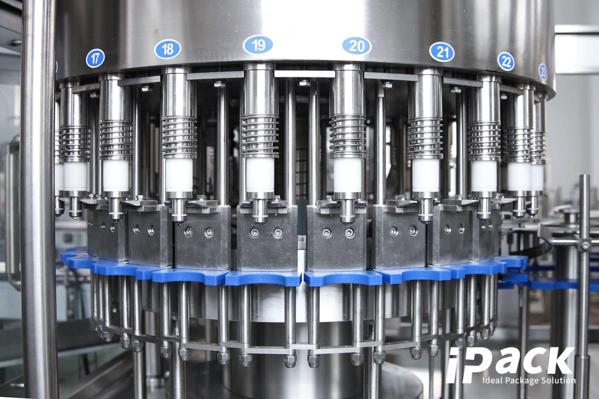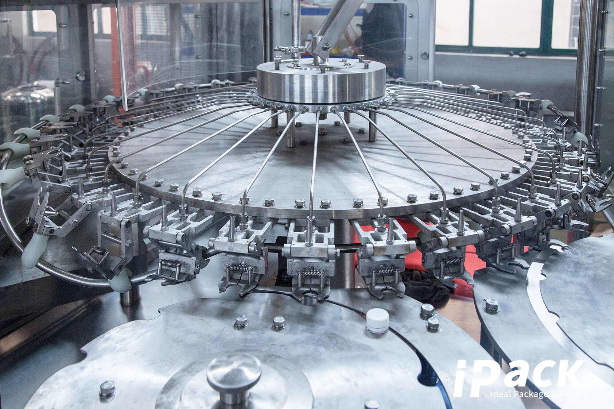 Ця машина використовується в основному для операцій з розливу води. Три функції миття пляшок, розливу та закривання об'єднані в одному корпусі машини. Увесь процес є автоматичним. Зручно регулювати машину для розливу різних типів пляшок. Операція розливу швидша та стабільніша завдяки сучасній технології запірних клапанів. Для автоматичного керування машиною використовується програмований контролер відомого бренду (PLC). Це ідеальний вибір для виробників напоїв.